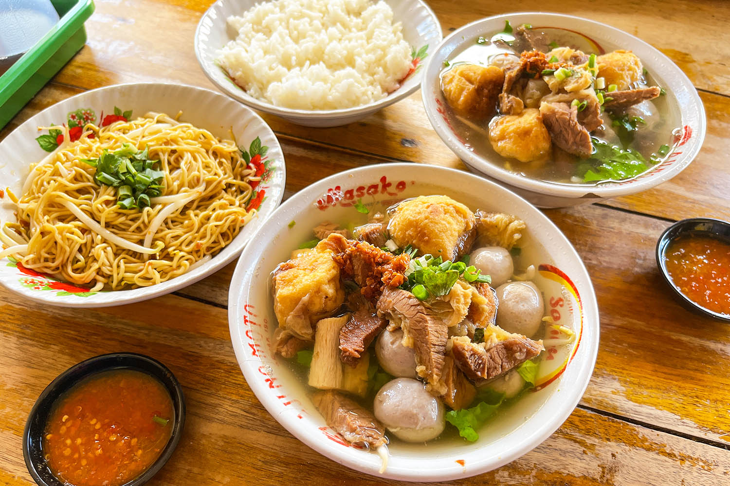 Yang istimewa memang kaldu sapinya yang bening dengan genangan sedikit minyak di keliling mangkuk. Taburan bawang putih cincang yang jadi ciri khasnya. Krenyes harum semerbak bikin hirupan kaldu makin nikmat. Tambahkan cabai merah, jeruk nipis dan kecap sesuai selera.
