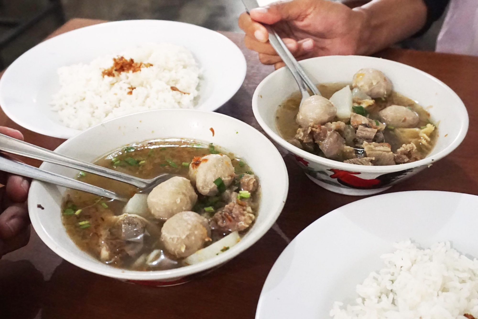 Spesialnya di Bali ada Soto Bakso Sapi, iyaa Soto lengkap dengan potongan daging, tulang lunak, babat, kikil, lobak putih dan ditambah pentol baksonya, harganya Rp.20.000,-/porsi. Makannya bisa pake nasi dengan harga terpisah yaitu Rp.5.000,-/piring.