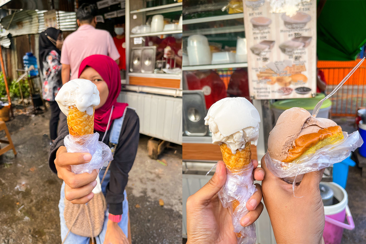 1. Kalau eskrim 1 cone 10.000 dan yang pakai roti 15.000 masih terjangkau laah. Apalagi eskrimnya juga enak ya, kualitasnya enggak bohongan.